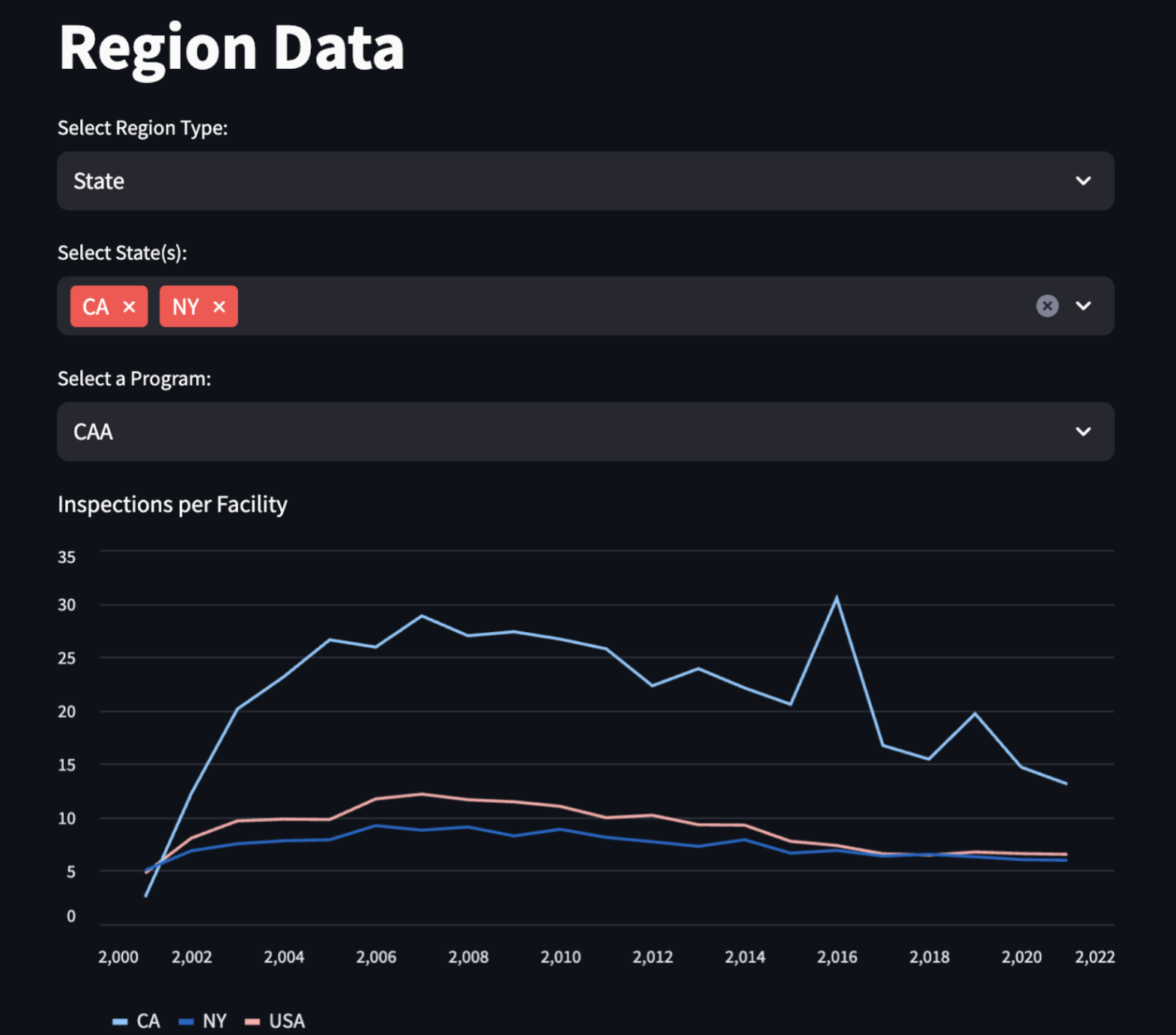 The EDGI team at Hack4Impact Cornell partnered with the organization to transform static and complex environmental data into a public-facing, interactive platform. Our goal was to build an accessible and user-friendly site to explore regional report cards and environmental enforcement data.